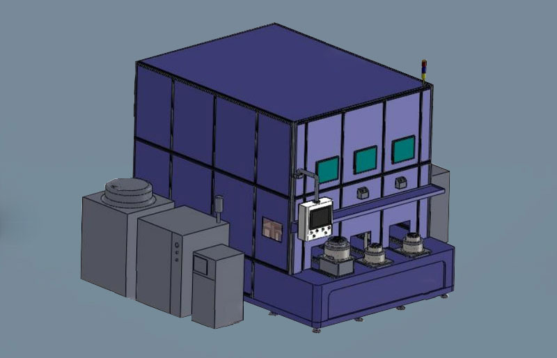 2、焊接工作台是针对客户产品的焊接工艺定制而成,三工位交替焊接,分别焊接叶轮的正面、反面以及龙骨。通过机器人编程对产品实现空间维轨迹焊接